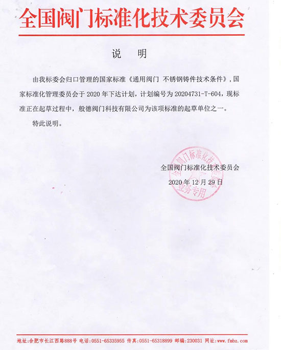圖|般德閥門為國家標準《通用閥門 不銹鋼鑄件技術(shù)條件》起草單位之一