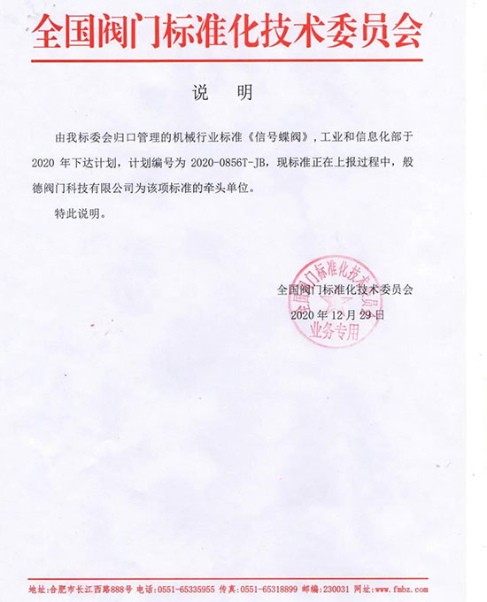 圖|般德閥門為機械行業(yè)標準《信號蝶閥》牽頭單位